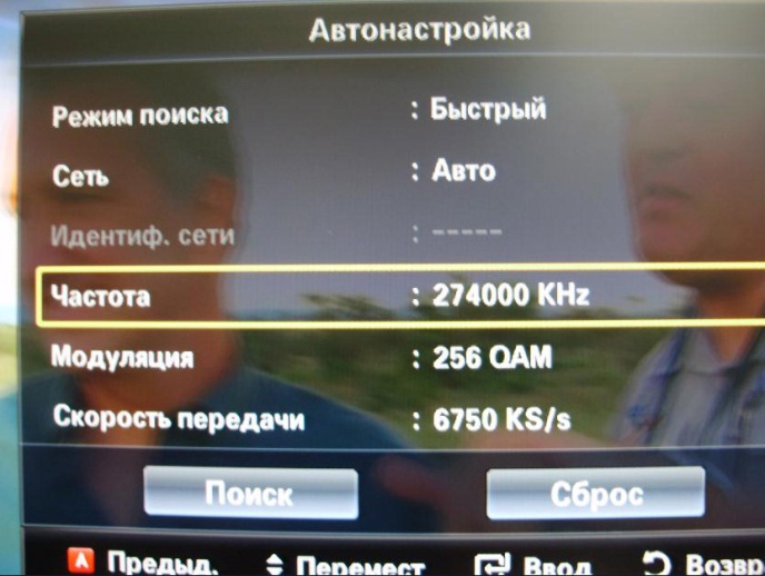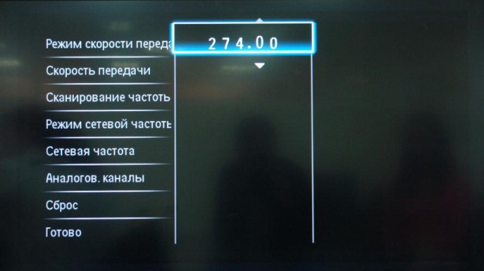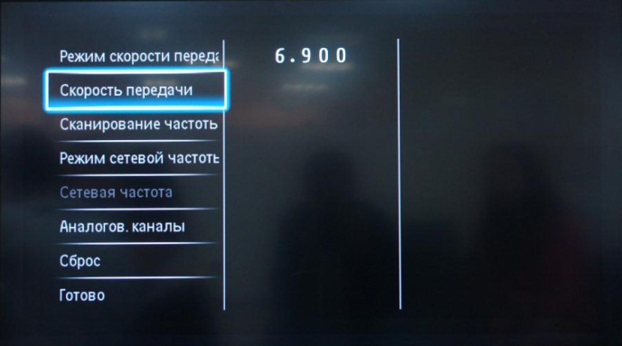 | 7. Установите ручной режим скорости передачи. Во вкладке скорость передачи вручную с пульта управления изменяем на 6875. В некоторых моделях телевизоров скорость потока указывается во вкладке «Символ 1», «Символ 2». | ![]() |